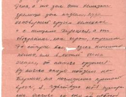 . Стеша, как у тебя дело с налогами, если будут требовать, то не плати. И как дело с дровами наверное очень трудно, ну как нибудь перезимуем, приходится мириться ничего не сделаешь. Ну, а теперь пропишу маленько про себя. Здоровье мое все в одном положении, а как ты писала и как Зимин говорил это не в мирное время, а военное, теперь мало признают и потом если врачи не признают, то судят, как симулянта.