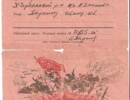 Письмо пущено 10/12/1943 года от Домбровского Сергея Ефимовича – Скрябневой Софии.