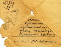 Шлю я вам красноармейский привет и желаю всего хорошего в вашей жизни, а главное здоровье. Во-первых строках моего письма я сообщаю, что я ваши посылки получил, за что благодарю. В посылке было все цело и яйца были целые, не протухли. Стеша, только ты не угадала положить масло, это для меня было бы лучше, и денег маловато, а то без денег везде плохо, ну да ладно, спасибо и на этом. Я посылку получил 22 числа и в этот день для меня был праздник. Сухари до сих пор есть. Стеша, а из письма понял, что ты убрала огород благополучно. Но только одно что плохо с дровами. И в колхозе не дают хлеба, а может дадут, а насчет поросенка я тебе так посоветую, если тяжело тебе держать, тогда зарежь и ешьте его с Витей. И вспоминайте про меня, как я любил и как мечтал закоптить окорок, но не пришлось. Похоже и за меня закоптят окороки, а не я. Но ничего не сделаешь такая участь моя несчастная
