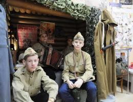 Погрузиться в атмосферу военных лет поможет интерьер фронтового блиндажа. Здесь маленькая елочка украшена вместо ёлочных игрушек ватой, использованными гильзами. Заинтересует гостей  музея фронтовой светильник, сделанный из гильзы  и подаренный ветераном войны Казаковым А.В. , и многие другие интересные экспонаты.  В экспозиции выставки демонстрируются подлинные вещи 1940-х гг.: патефон, рация, варежки, шерстяные носки, кисет для табака, гимнастерка нашего земляка, пробитая пулей,которая принадлежала участнику Великой Отечественной войны Маткину Федору Степановичу.