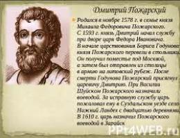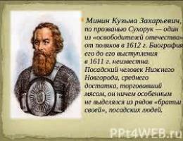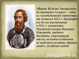 Козьма Минин и князь Дмитрий Михайлович Пожарский - два русских героя – организовали в Нижнем Новгороде народное ополчение против польских захватчиков и повели его на Москву. Тем самым они освободили столицу русского государства от польской интервенции. Памятник Минину и Пожарскому стоит на Красной площади в Москве.