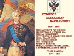 Александр Васильевич Суворов– выдающийся полководец, не испытавший ни одного поражения в своей военной карьере. Героический поход совершил Суворов, пройдя из Италии через швейцарские Альпы. Этот поход вошёл в военную историю как высочайший образец героизма, мужества, верности долгу и настоящий подвиг русского народа. Мы помним и ценим Суворова, восхищается его подвигами, мудростью, общением с солдатами. Его «наука побеждать» до сих пор помогает солдатам освоить военное искусство. Имя Суворова носит военное училище в Москве.