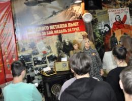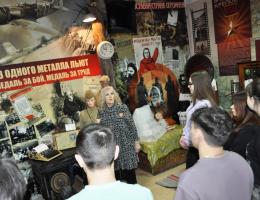 Многие школьники посетили экспозицию «Из одного металла льют медаль за бой, медаль за труд», посвященную труженикам тыла: детям, женщинам, старикам, которые ковали победу в тылу, работали в три смены в условиях голода и холода, часто на пределе человеческих возможностей.