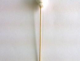 1. Верх палочки намазываем клеем, затем накладываем синтепон, придаем овальную форму заготовке для головы. Делаем несколько витков ниткой, закрепляя ее на палочке.