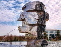 Скульптура-фонтан Дэвида Черны являет собой 3-мерное изображение головы мужского пола, простирающейся на 7,6 м. в высоту. Общий вес нержавеющей конструкции, состоящей из 35 стальных