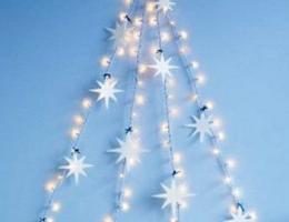 Например, если у вас много электрических гирлянд, то можно на стене создать красивые елочные композиции (фото 1 и 2).