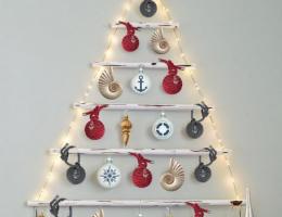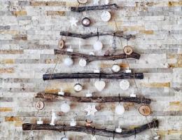 . Вариант елочки с ветками деревьев (фото 6) подойдет для интерьера гостиной и обязательно понравится взрослым и детям. Можно для новогодней елочки использовать ракушки, камушки, засушенные морские звезды. Многие люди, которые отдыхают на море, привозят их с собой на память (фото 7).