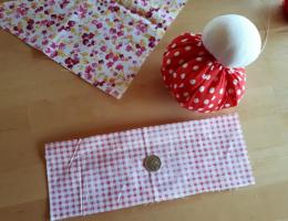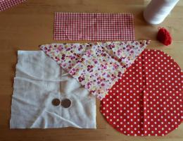 Для того, чтобы сделать куклу «Благополучницу», нужна натуральная ткань - белая для лица, цветная для юбки, платка, рук, фартука. Также надо подготовить нитки для обмотки белого или красного цветов, монетки, наполнитель - вата или можно использовать травы (фото 2).