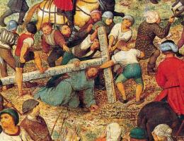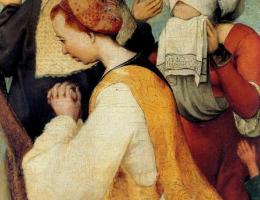 От толпы отделена группа людей, близких Христу. С большой достоверностью передает художник их муки и страдания, которые кажутся еще более трагичными на фоне праздно снующей человеческой толпы, равнодушной к чужому горю.     Публичные казни были знакомой чертой жизни 16-го века, особенно в беспокойной Фландрии.