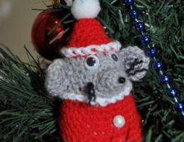 Миниатюрные вязанные и сшитые игрушки украшают нашу елочку. Это Дед Мороз на подкове, символизирующей достаток в доме (фото 7). Смешная Мышка-елка и Мышка-снеговик. У каждой специальные костюмы и веселые шапочки (фото 8,9).
