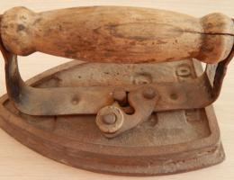Утюг универсальный. Корпус – металлический, ручкf-деревянная. На нижней части ручки утюга поставлено клеймо завода. Год выпуска- 1955 год. Страна производитель: СССР –РСФСР. Утюг прошел долгий путь развития.И во все времена этот «снаряд для глаженья» был верным спутником человека, делая быт значительно комфортнее.